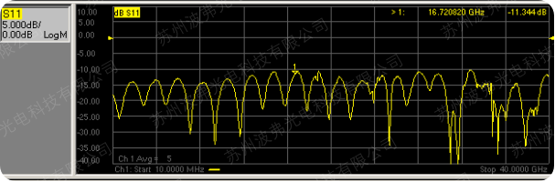 S11是電回損,定義為射頻電信號從調制器RF端口反射會信號源的比例(dB表示)。S21定義為注入調制器射頻端口的電信號-3dB高頻截至帶寬。調制器的RF射頻端的高頻效率通常由電回損和電光帶寬決定,用高速儀器比如光電探測器和矢量網絡分析儀可測量出這些參數。強度調制器需要設置在正確的直流偏壓點,并且輸入射頻弱信號(S11一般0dBm數量級,S21一般-15dBm數量級),S11需要記錄它在整個頻率段的最大數值,S21測量時網絡分析儀和高速光探測器需要被校準和去嵌,以確保測量出的電光帶寬僅僅是調制器本身的。