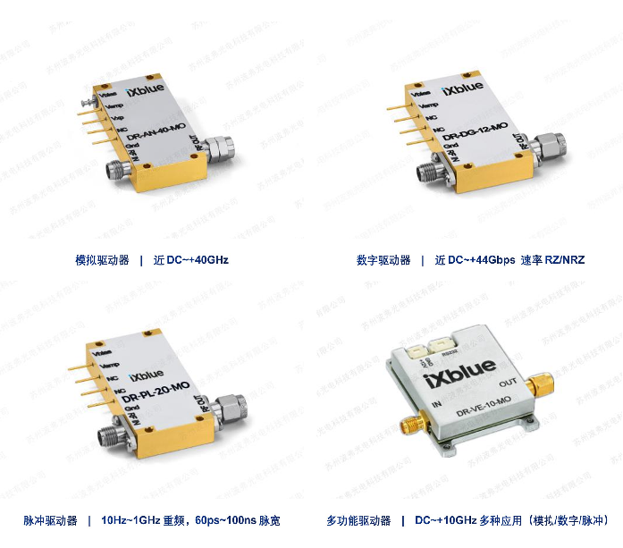 在電光調(diào)制器的使用過程中,無論是信號源還是碼型發(fā)生器所輸出的功率(電壓Vpp)均會隨著RF射頻頻率的增加而下降(降低),由于鈮酸鋰電光調(diào)制器針對于模擬、數(shù)字、脈沖等應(yīng)用,大部分應(yīng)用需要達到Vπ甚至2Vπ以上,我們在使用過程中就會需要使用到射頻放大驅(qū)動器(電光調(diào)制器驅(qū)動器)的配合使用,已保障我們的調(diào)制達到最佳使用效果。法國iXblue提供豐富的電光調(diào)制器驅(qū)動器產(chǎn)品,用于滿足市面上常用的模擬調(diào)制、數(shù)字通訊、量子應(yīng)用、脈沖調(diào)制、光譜展寬等幾乎所有的常見應(yīng)用。