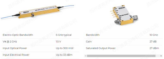 iXblue研制了NIR-MPX-LN-02及其配套的高壓射頻放大器DR-AN-10-HO,NIR-MPX-LN-02滿足SBC激光系統(tǒng)的所有要求,這種相位調(diào)制器具有超過5GHz的帶寬,1.5V的極低半波電壓,超過33dBm的射頻承受功率和300mw的光承受功率。