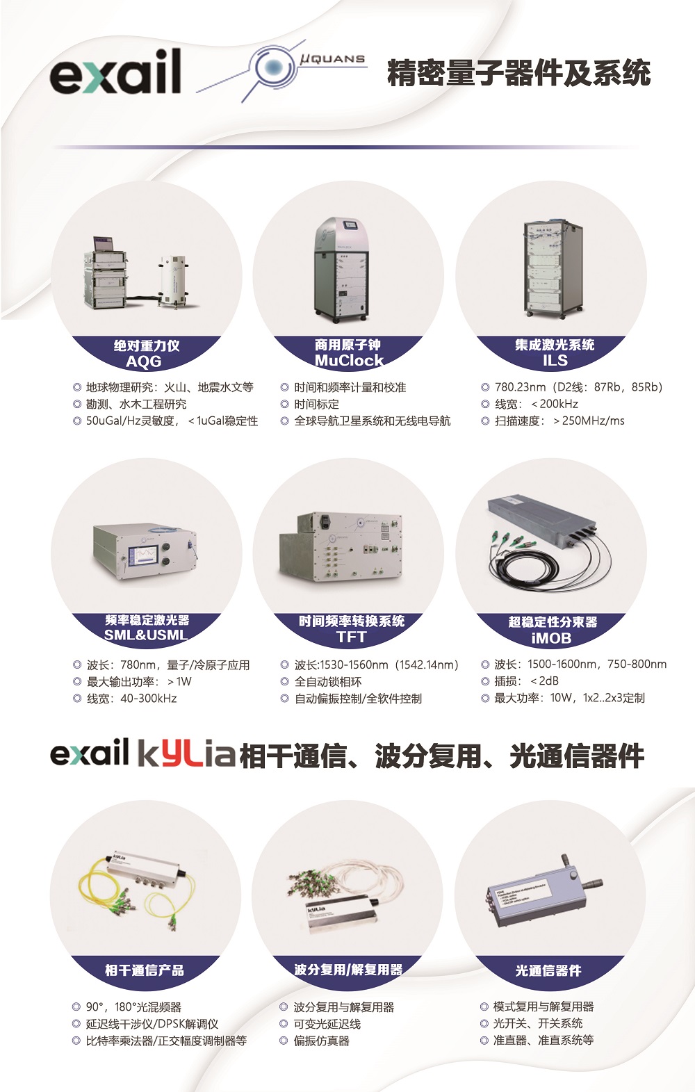 (7)exail/Muquans 量子級激光器,量子重力儀 & exail/Kylia 微光學產品:光混頻器,延遲線干涉儀