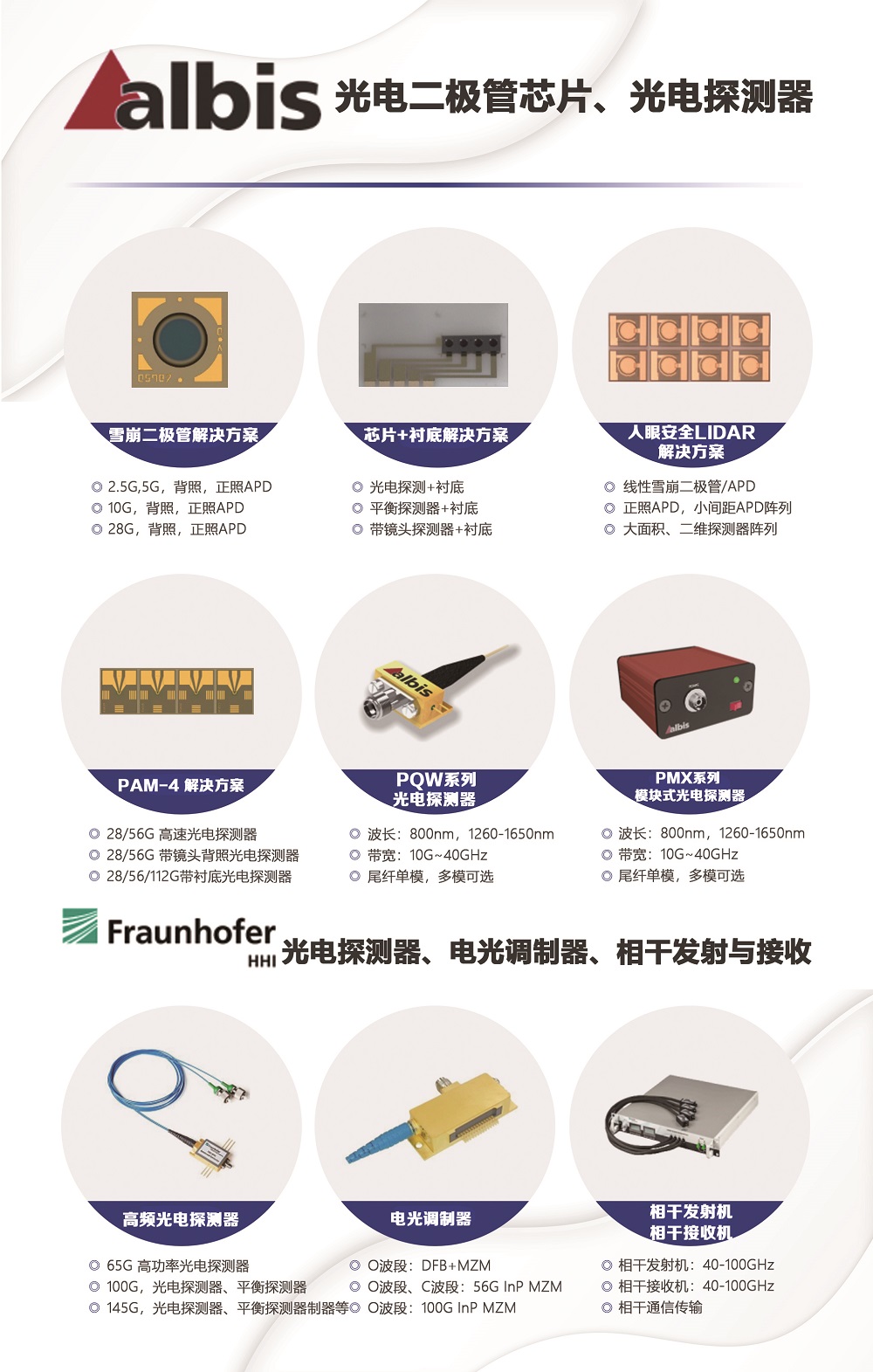 (8)Albis:光電探測器芯片 & Fraunhofer HHI 100GHz+光電探測器,電光調制器