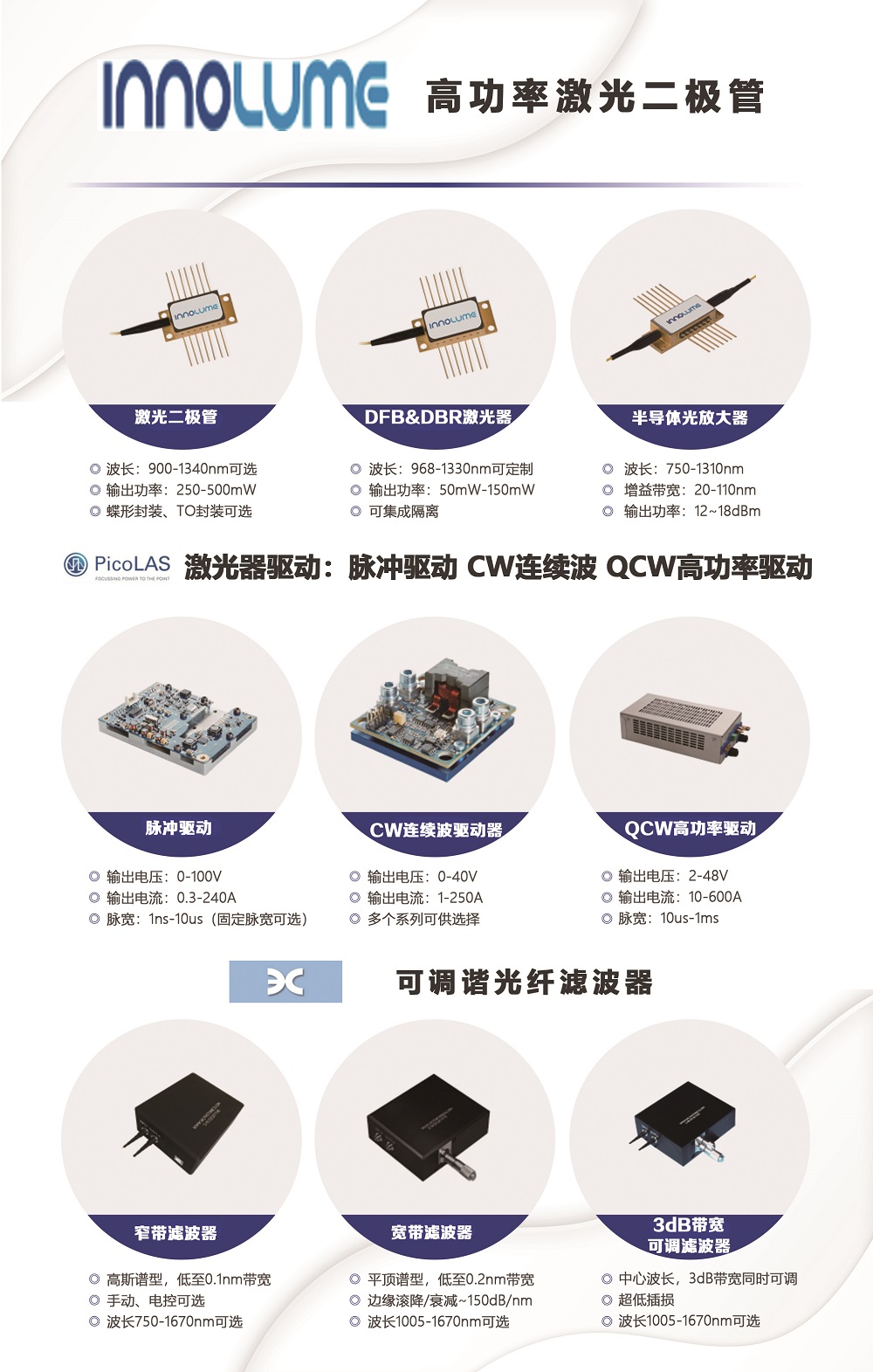 (9)Innolume 激光器二極管,半導體光放大器 & WLPhotonics 可調諧光纖濾波器