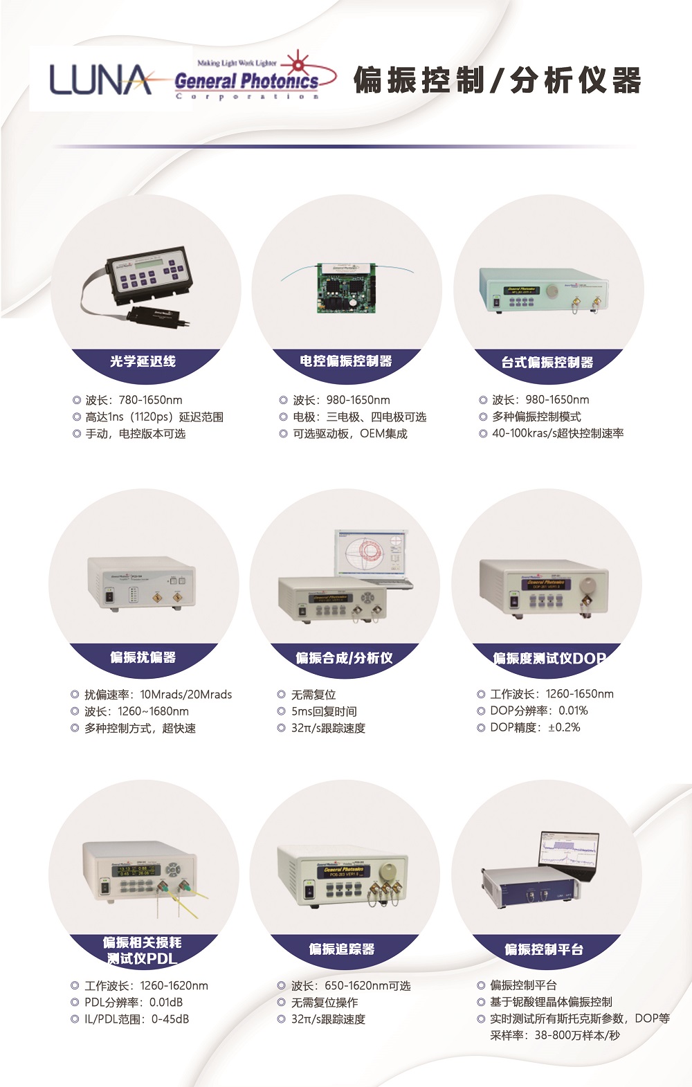 (10)LUNA/GeneralPhotonics 偏振相關器件 INLINE Photonics 消光比測試系統