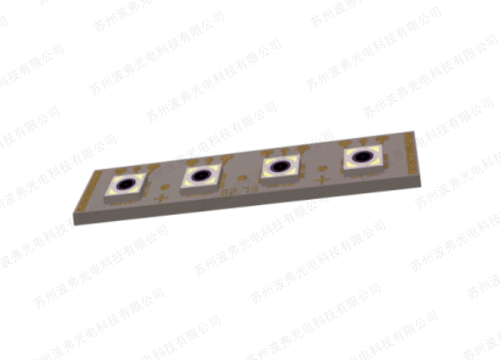 底部照明的4通道光電二極管陣列倒裝焊接在具有環繞金屬化的陶瓷底座上。