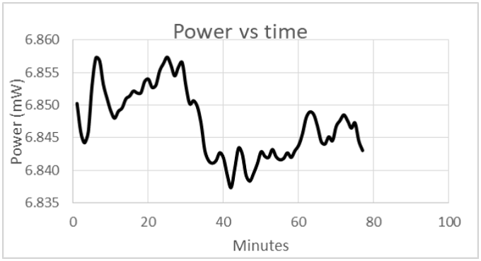 功率與時間的關系圖@(室溫,1.5h)顯示了出色的功率穩定性,適用于插入損耗測試等應用。