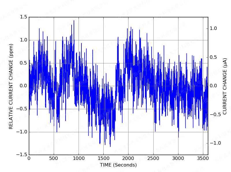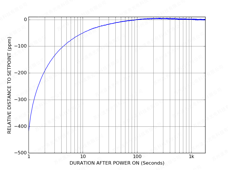 隨后上電后,CTL101控制器只需一分鐘即可將激光電流穩定在設定值的10 ppm范圍內: