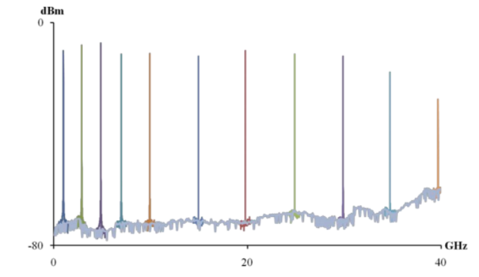 通過光接收器和射頻頻譜分析儀測量的樣本外差信號。