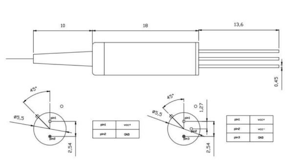 標準封裝:Ф5.6XL18 ;緊湊型封裝:Ф3.5XL16
